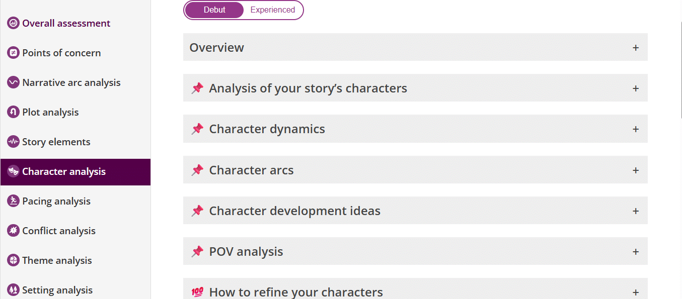 Run your completed manuscript through the new Marlowe 3.0 Author Dashboard to receive an in-depth analysis of your characters — including dynamics, arcs, and points of view — along with developmental insights to help you strengthen them further. Marlowe is an amazing tool that every author should have in their toolbox