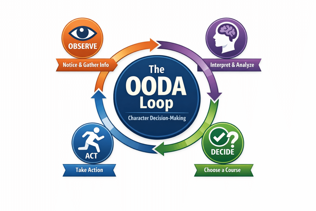 But one technique has quietly taken hold across genres. It’s a decision-making framework borrowed from military strategy โ and it turns out to be a remarkably powerful tool for fiction. It’s called the OODA Loop. Once you understand it, you’ll find it everywhere in the stories you love most.