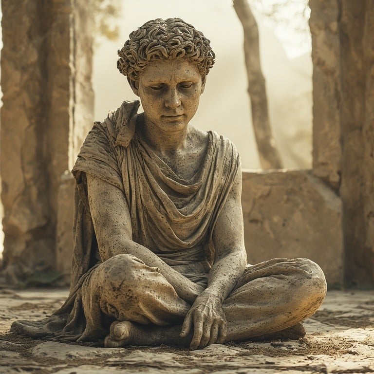 It’s naturalistic. But there’s no rainbow-glint of swirled oil on the water’s surface. The bridge hasn’t been defaced by graffiti. The oaks are growing in a straight line. And the pagoda is several thousand miles out of place. In other words, it’s not ‘real’.